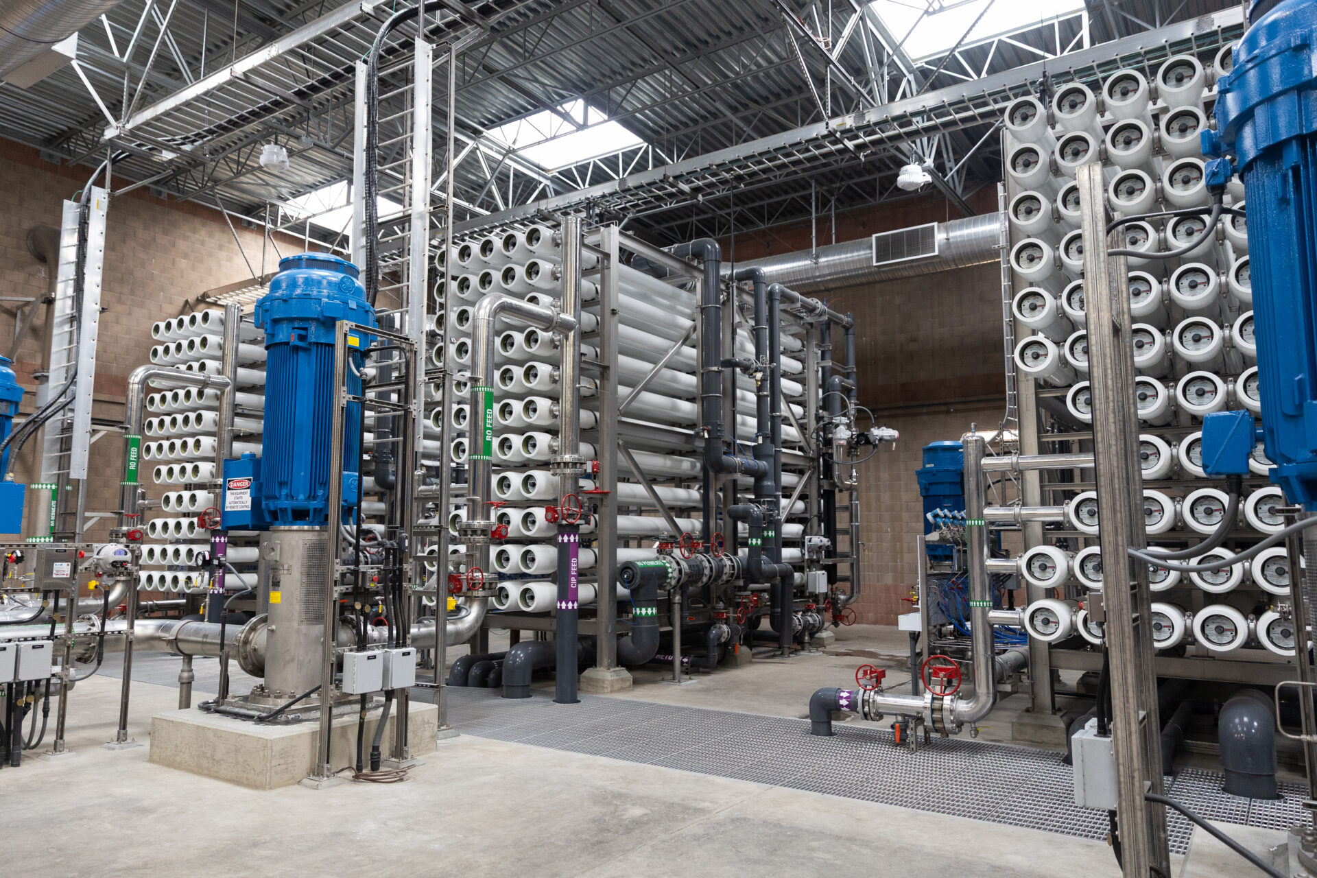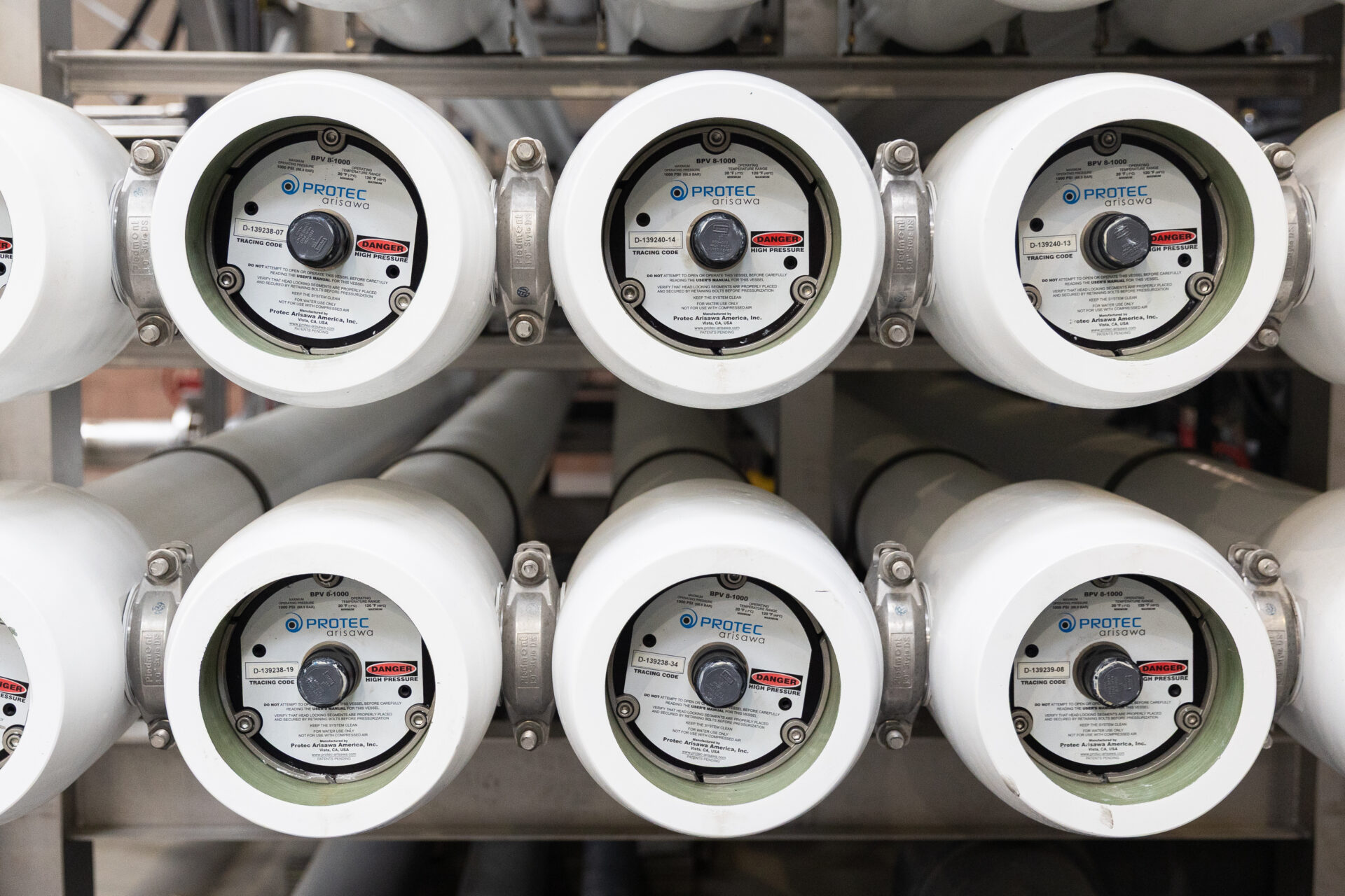 The plant’s reverse osmosis system forces water through a semi-permeable membrane at an extremely high pressure. Photo: Magali Gauthier