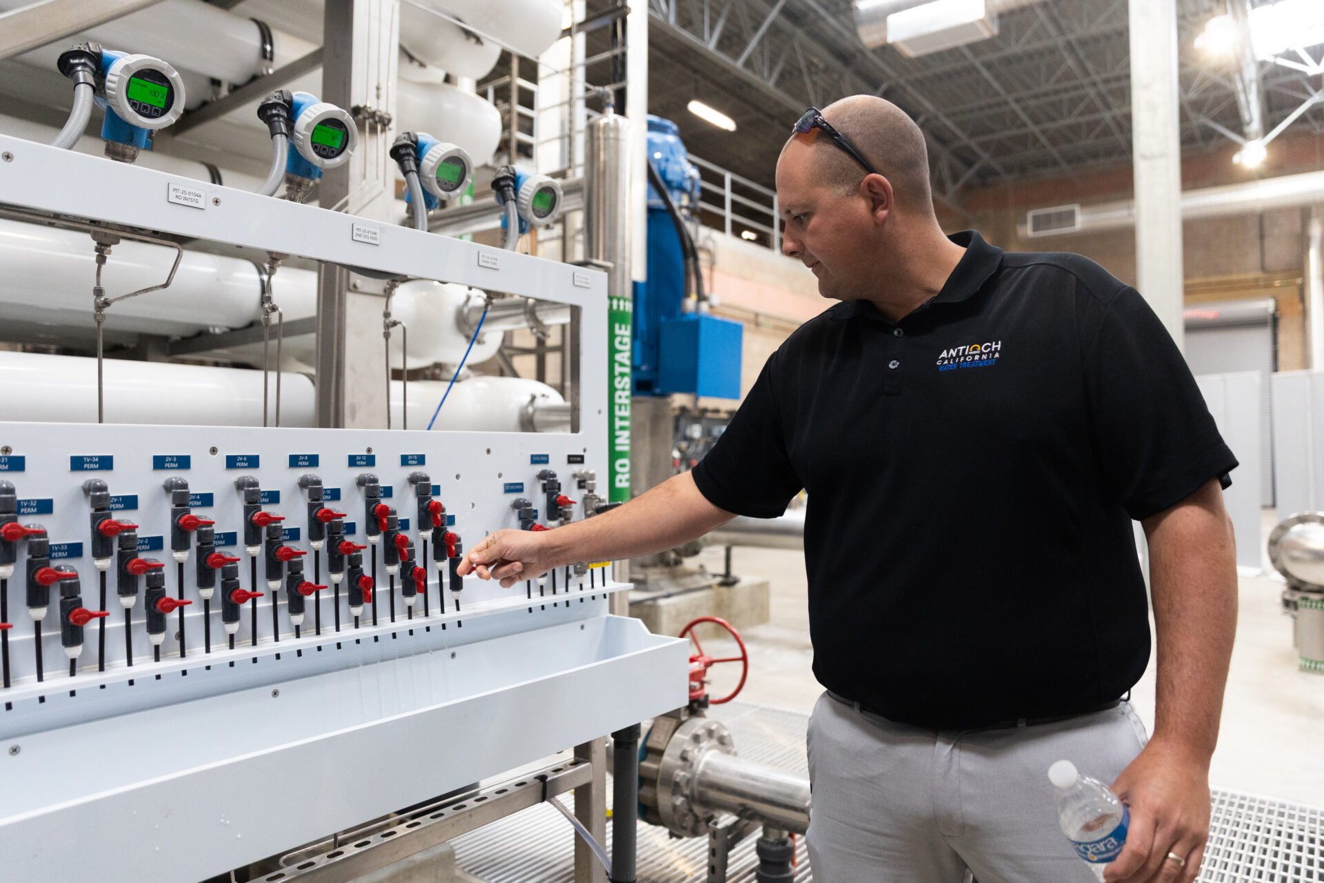 Marcus Woodland, the superintendent of Antioch’s water treatment plant, says that out of the eight million gallons the desalination facility processes daily, 75% is turned into potable water.