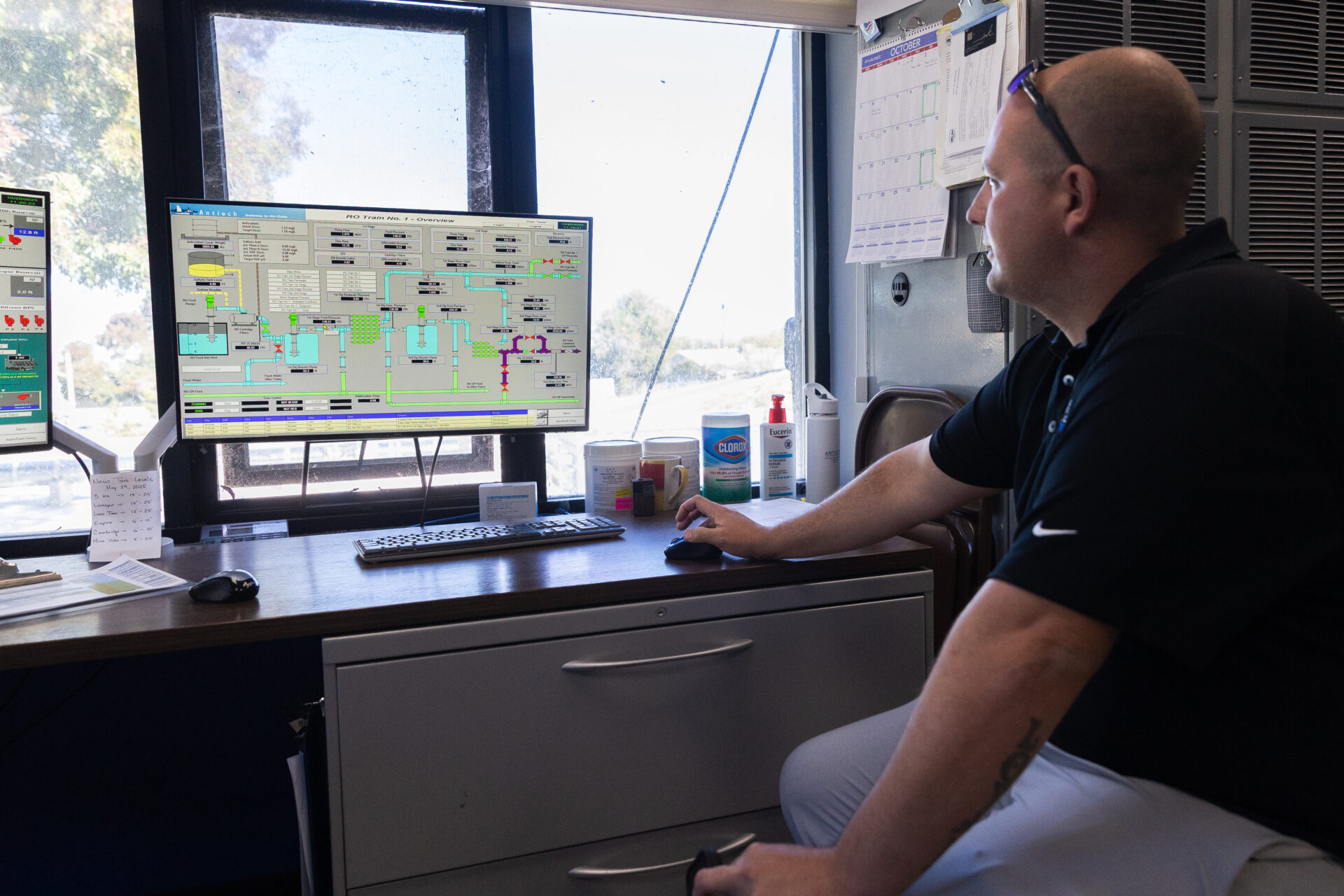 Plant superintendent Marcus Woodland checks pressures. Photo: Magali Gauthier
