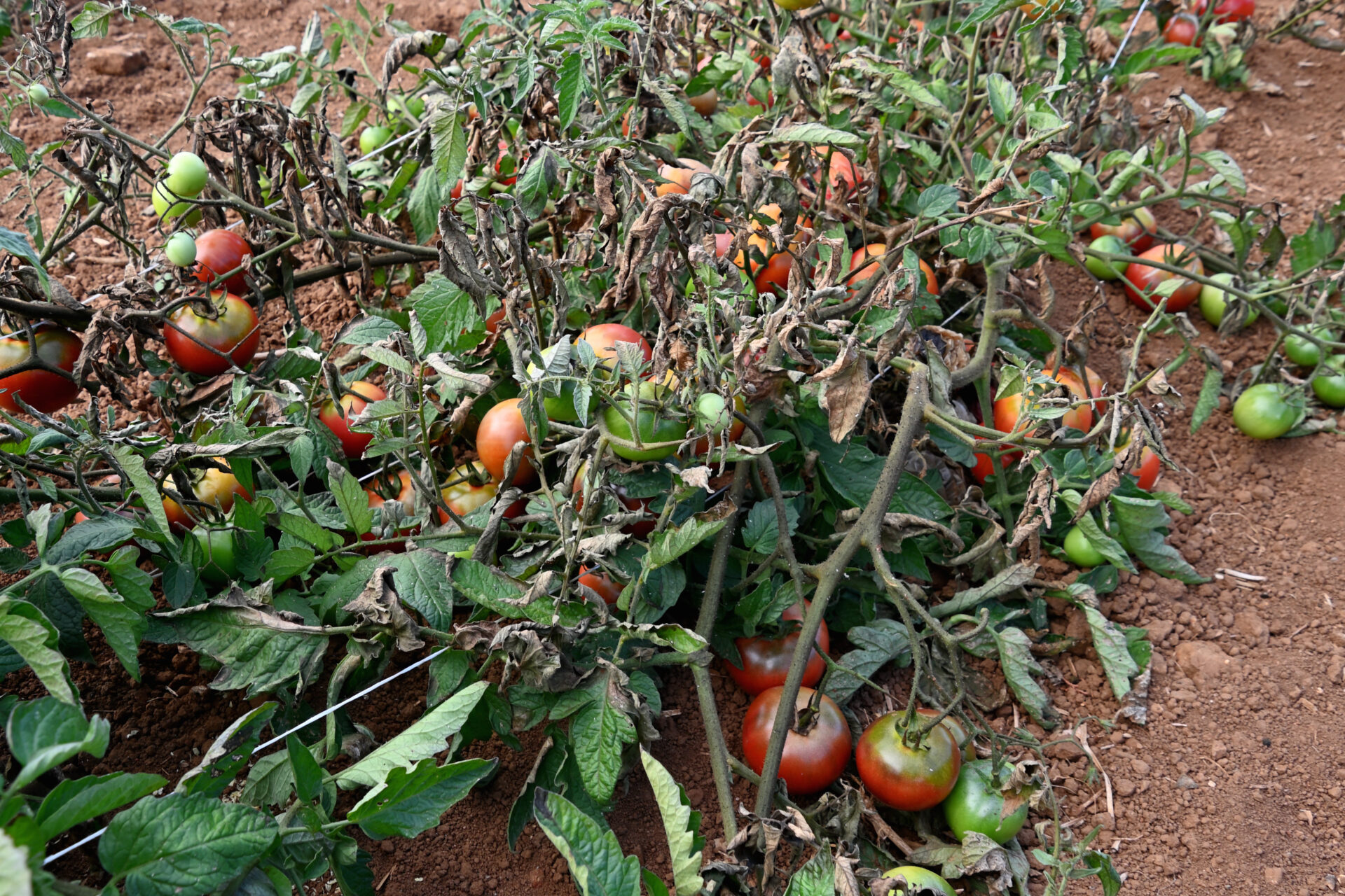 Dry-farmed tomatoes in a UC Santa Cruz trial in 2025. Photo: Mark DeGraff
