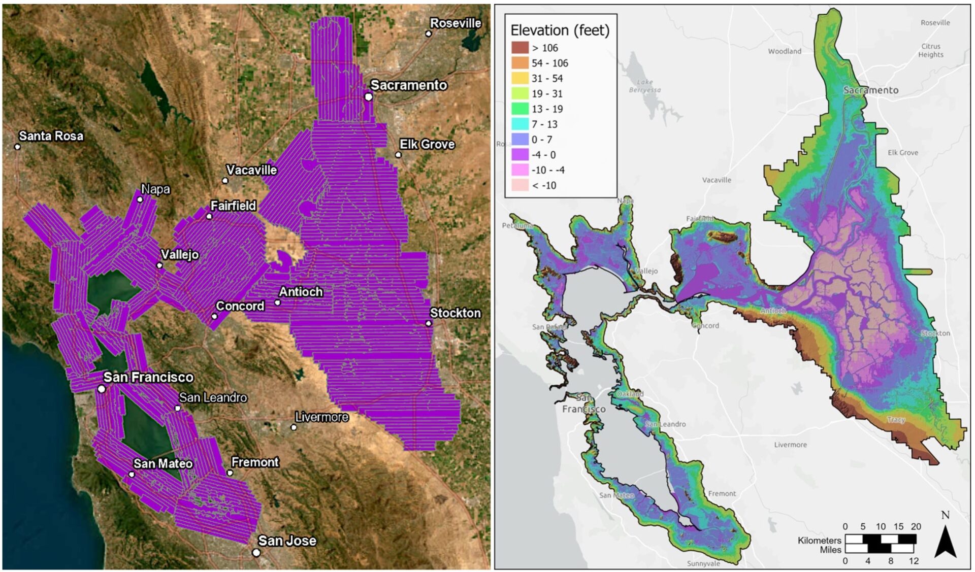 So what’s in it for Bay-Delta planners, engineers, ecologists, and policymakers? “This will be a crucial data set for anyone developing sea level rise and shoreline adaptation plans under the RSAP,” says Braud. He points out that instead of cities and counties flying their own lidar to develop plans to comply, they can use the new regional set.