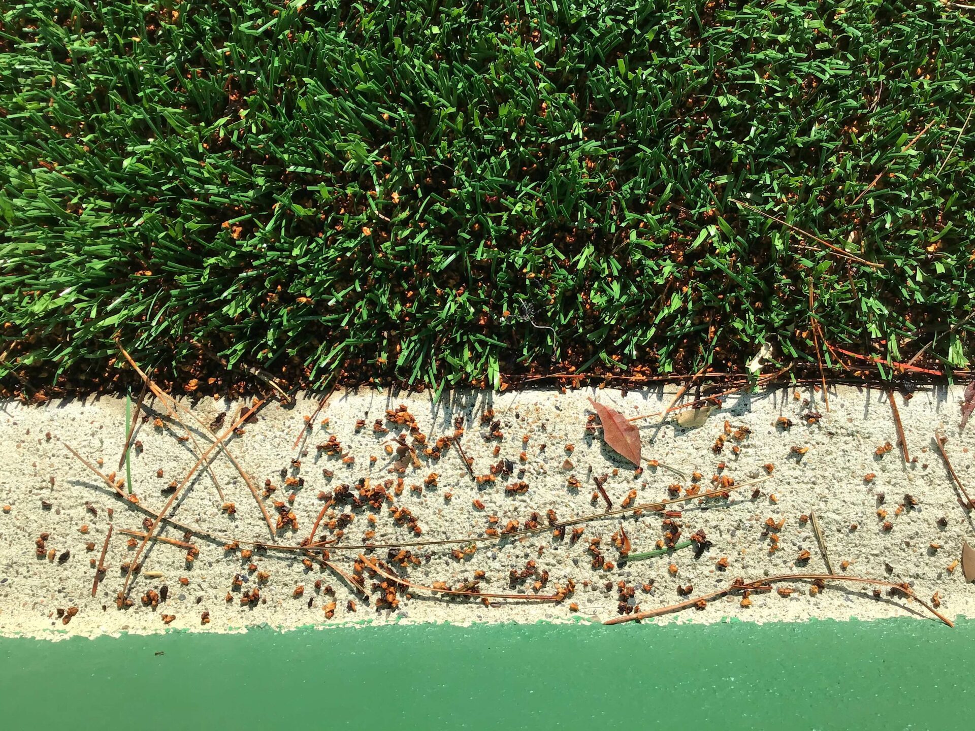 Las partículas de relleno de caucho y corcho migran desde Kimball Field, en San Francisco, hacia los alrededores. Foto: Ariel R. Okamoto.