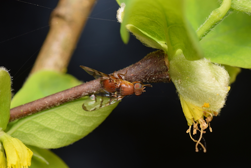An insect on a branch of Western leatherwood, a rare plant found in only a few Bay Area locations. Photo: Saumitra Kelkar