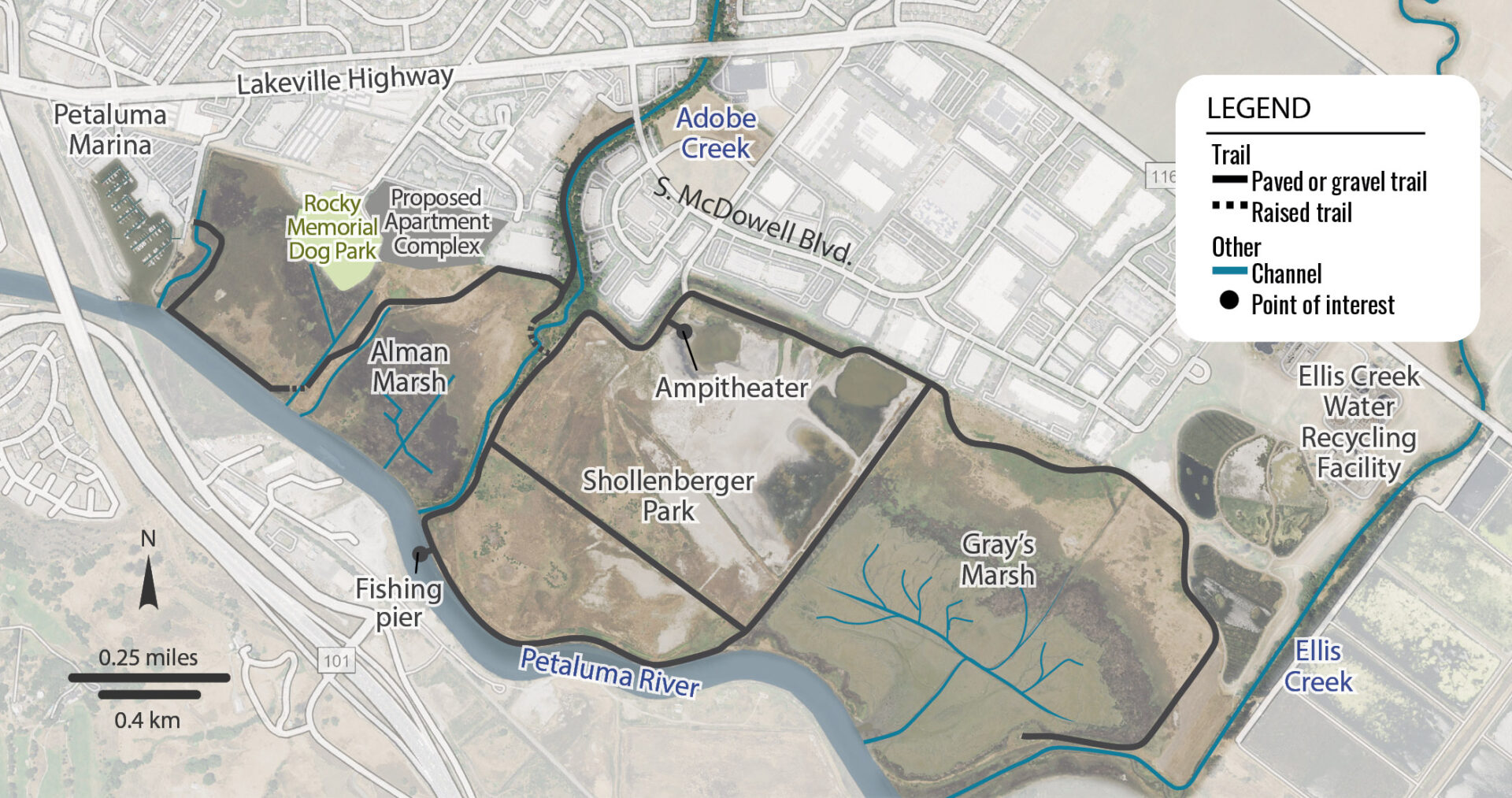 How Adobe Creek and the Petaluma River can help three parcels, including a popular park, evolve into one resilient shore.