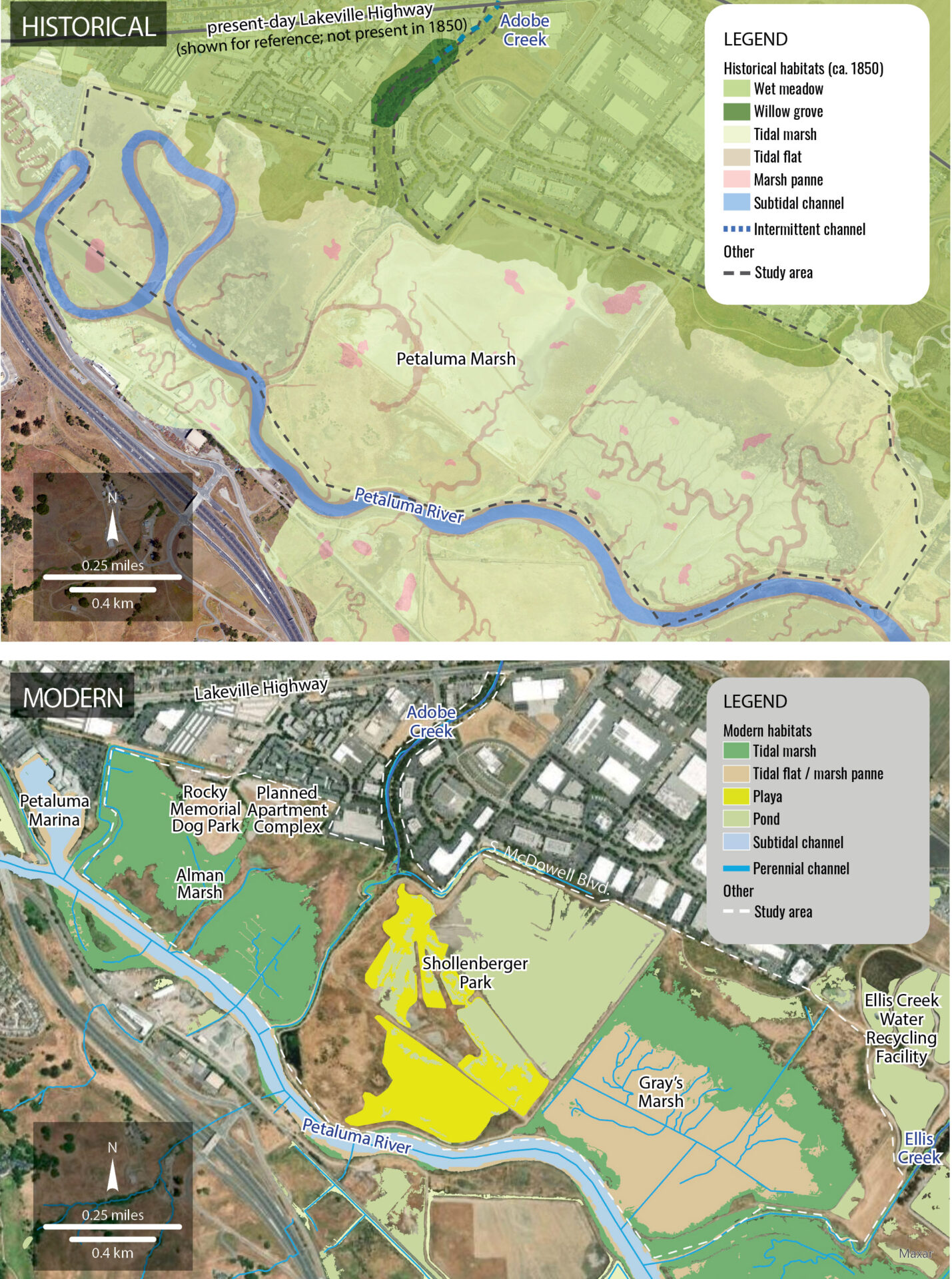 But not all is well on the Petaluma Marsh. Its original 16,000 acres have fragmented into a patchwork of small marshes totaling about 6,800 acres. Human and natural needs sometimes clash, particularly around wetlands, and nowhere is that more true than at Petaluma’s most beloved public open space.