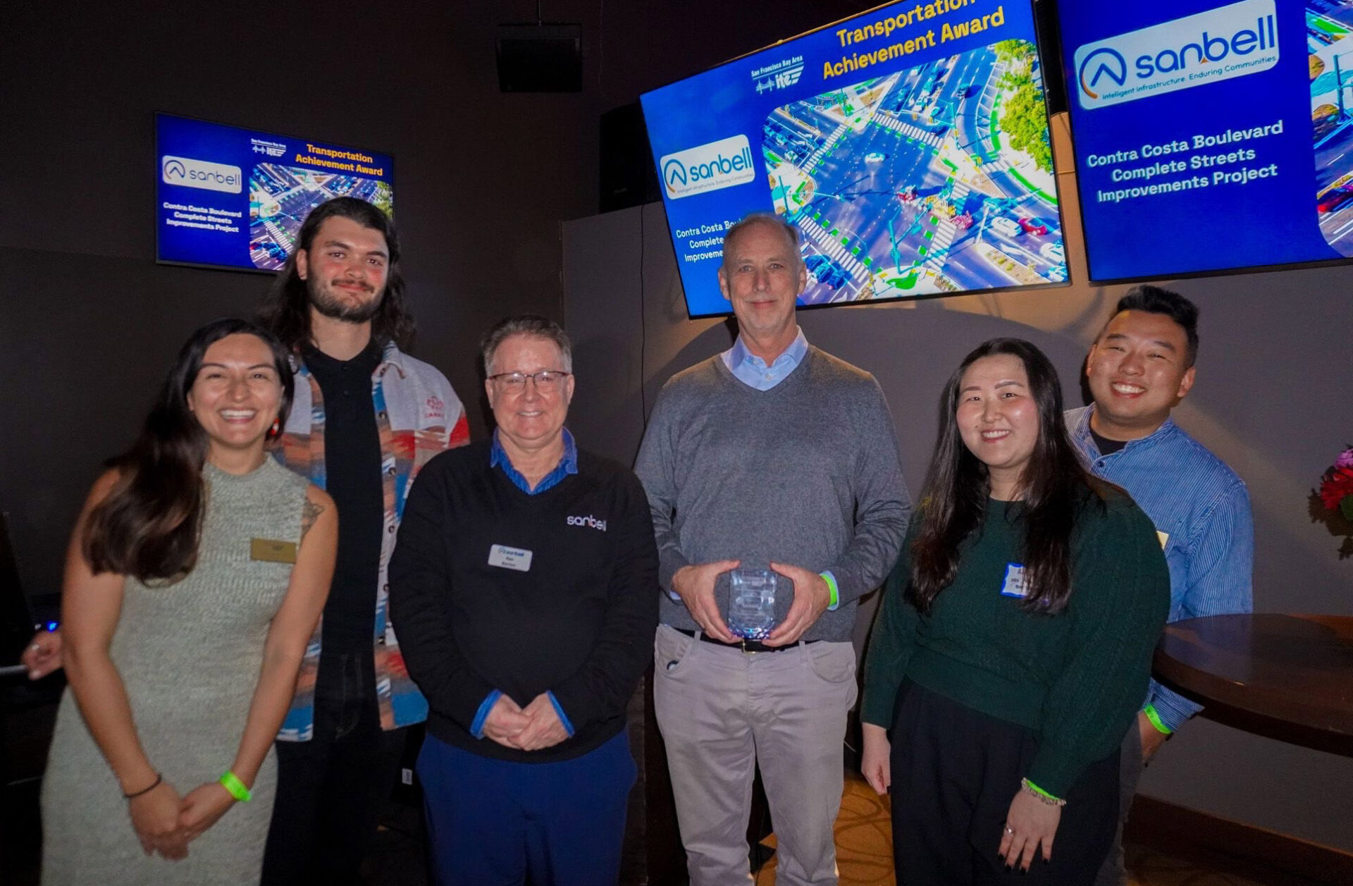 The Sanbell design team accepts the Transportation Award for Complete Streets at the 2025 Awards Ceremony & Winter Celebration. Photo: Joseph Faria-Poynter