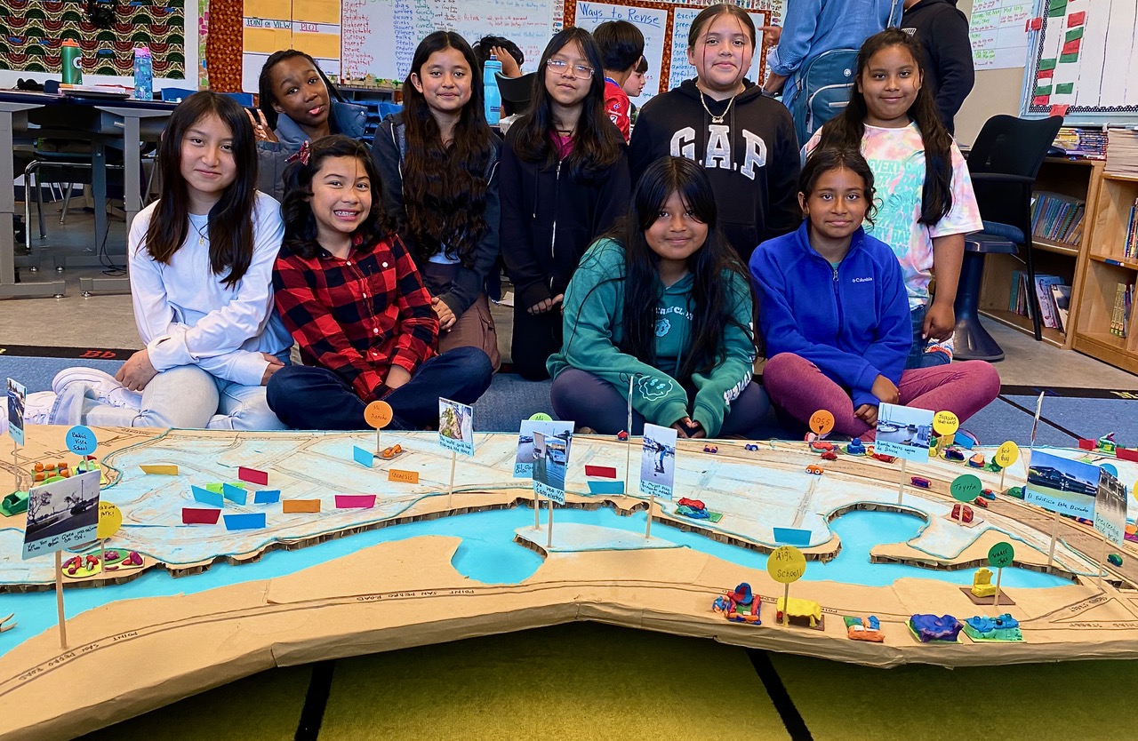 The Laurel Dell Elementary fifth-grade class is about 94% Latinx and 75% Guatemalan. All but three students are bilingual and speak English as a second language. This class’ client was the nonprofit Union of Concerned Scientists, which charged the students with envisioning how to reduce the environmental impacts of climate change and sea level rise to create a more resilient San Rafael. The organization has incorporated the students’ analysis and feedback into a just-released report on coastal resilience.