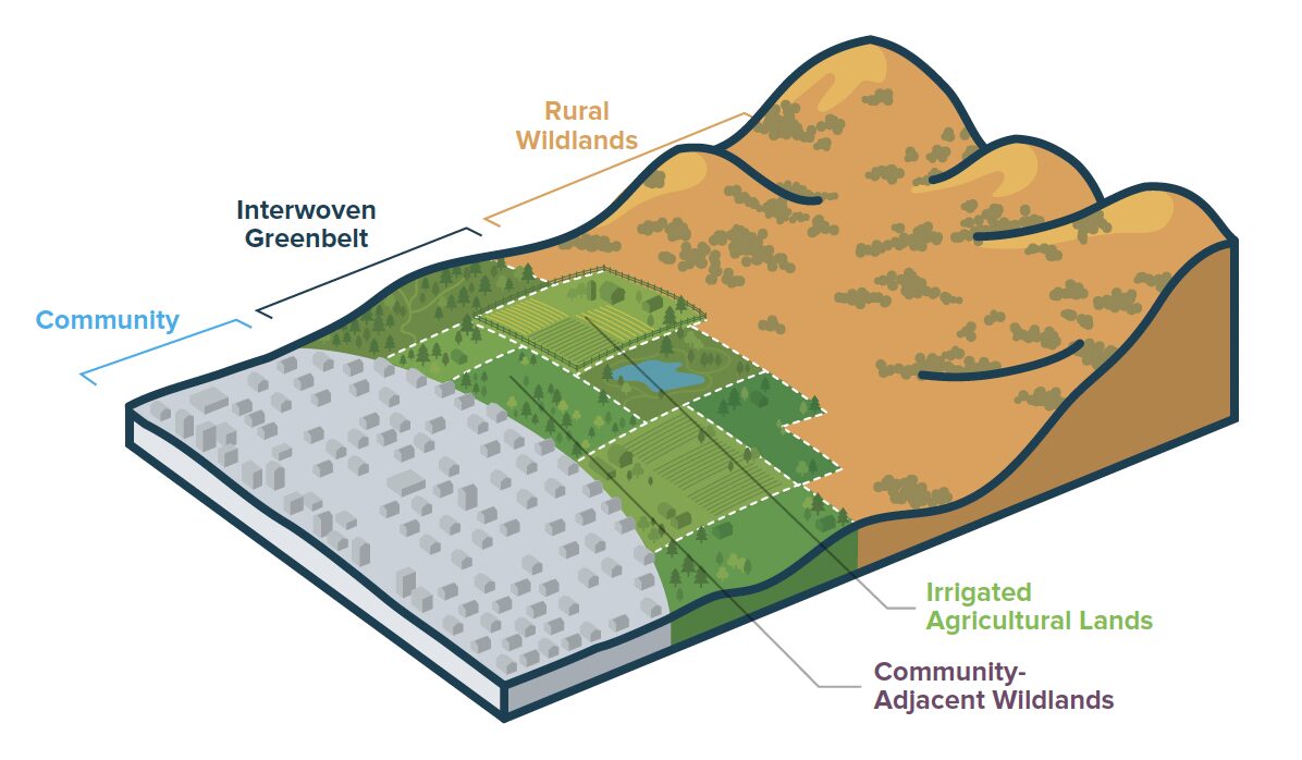 That’s the puzzle the Greenbelt Alliance tackles in their latest report, and the solution they’ve landed on is refreshingly pragmatic. Instead of trying to buy up and convert a continuous ring of publicly owned greenbelt — impossibly expensive in places where houses nestle between working vineyards and private woodlands — they propose knitting together what’s already there. They call it the Interwoven Greenbelt Buffer: a mosaic of irrigated farmland, managed grasslands, and strategically thinned forests that collectively mimics the protective effects of a traditional greenbelt.